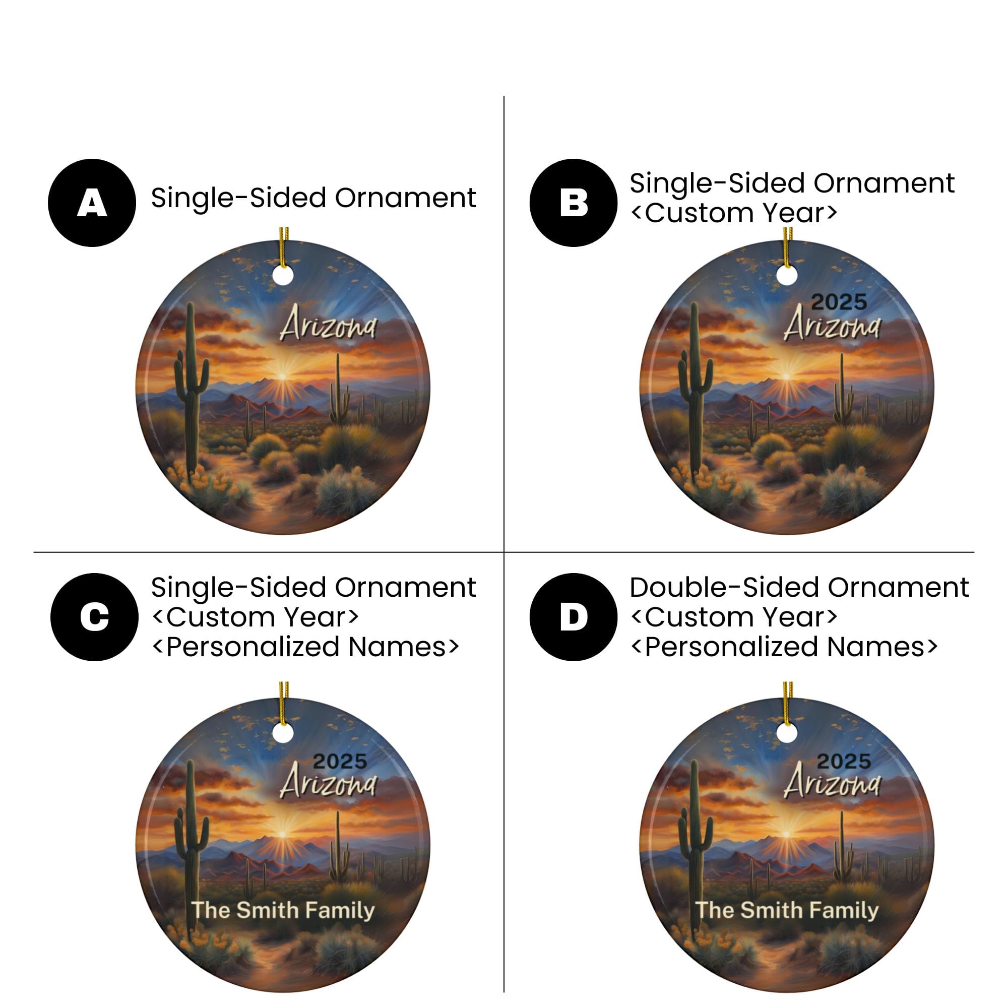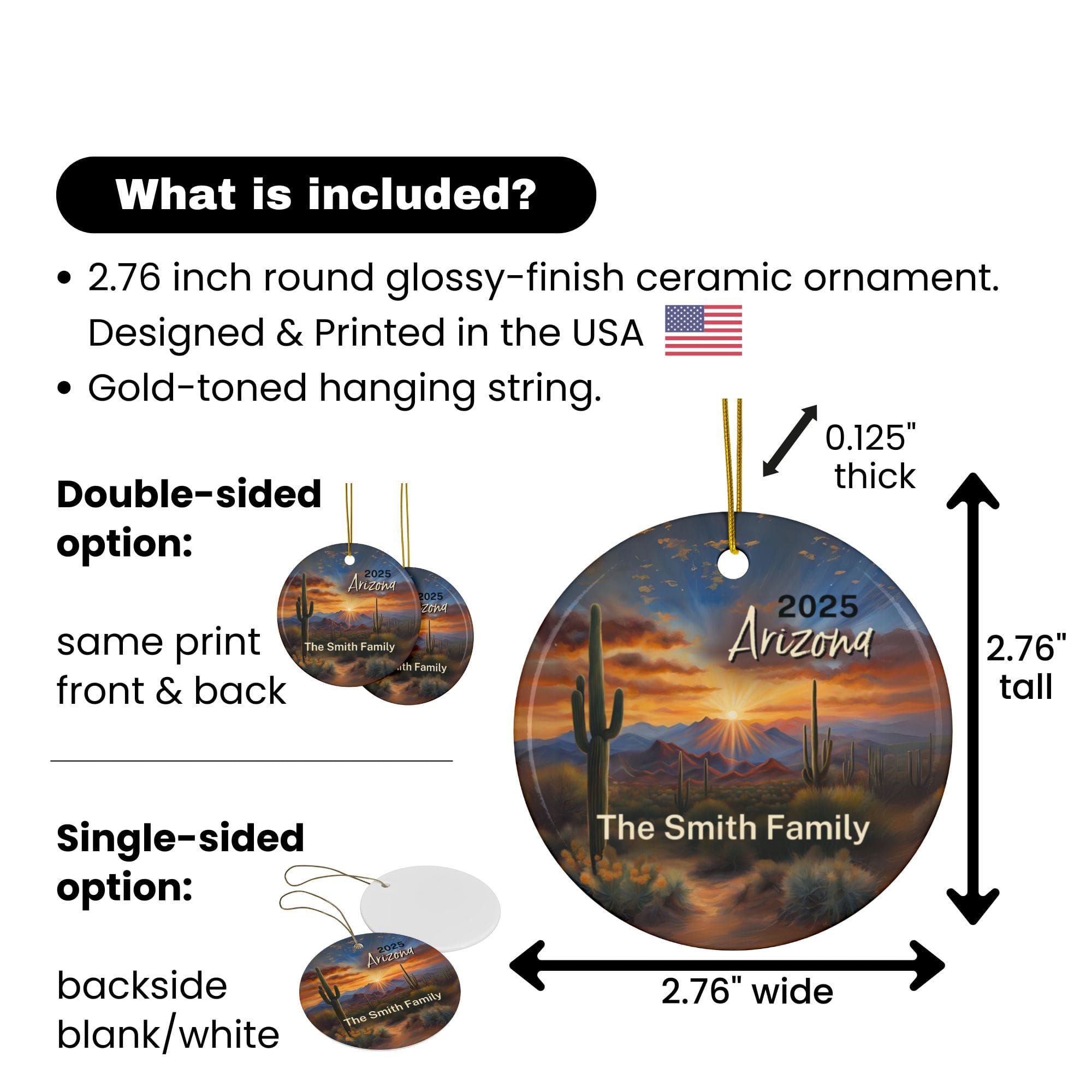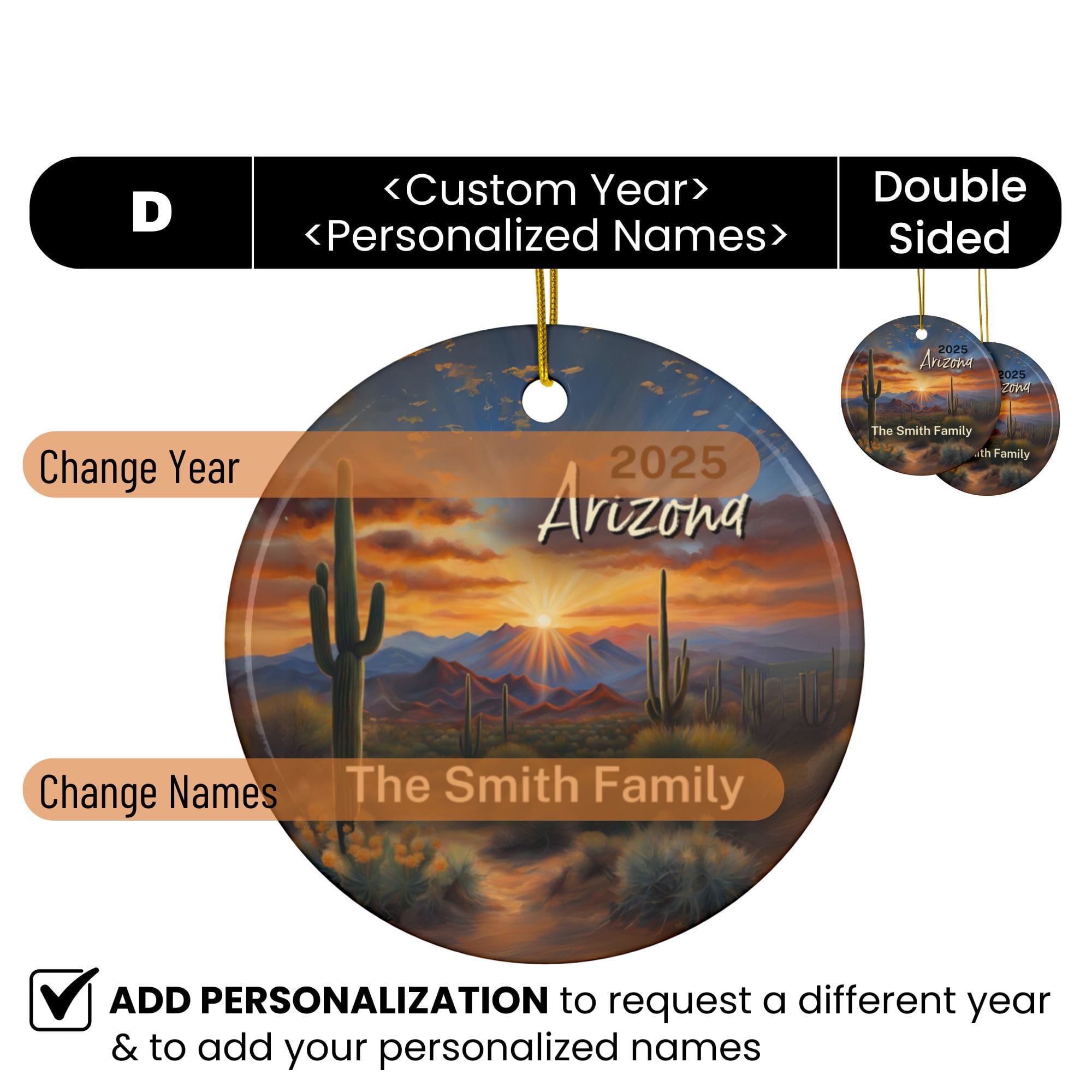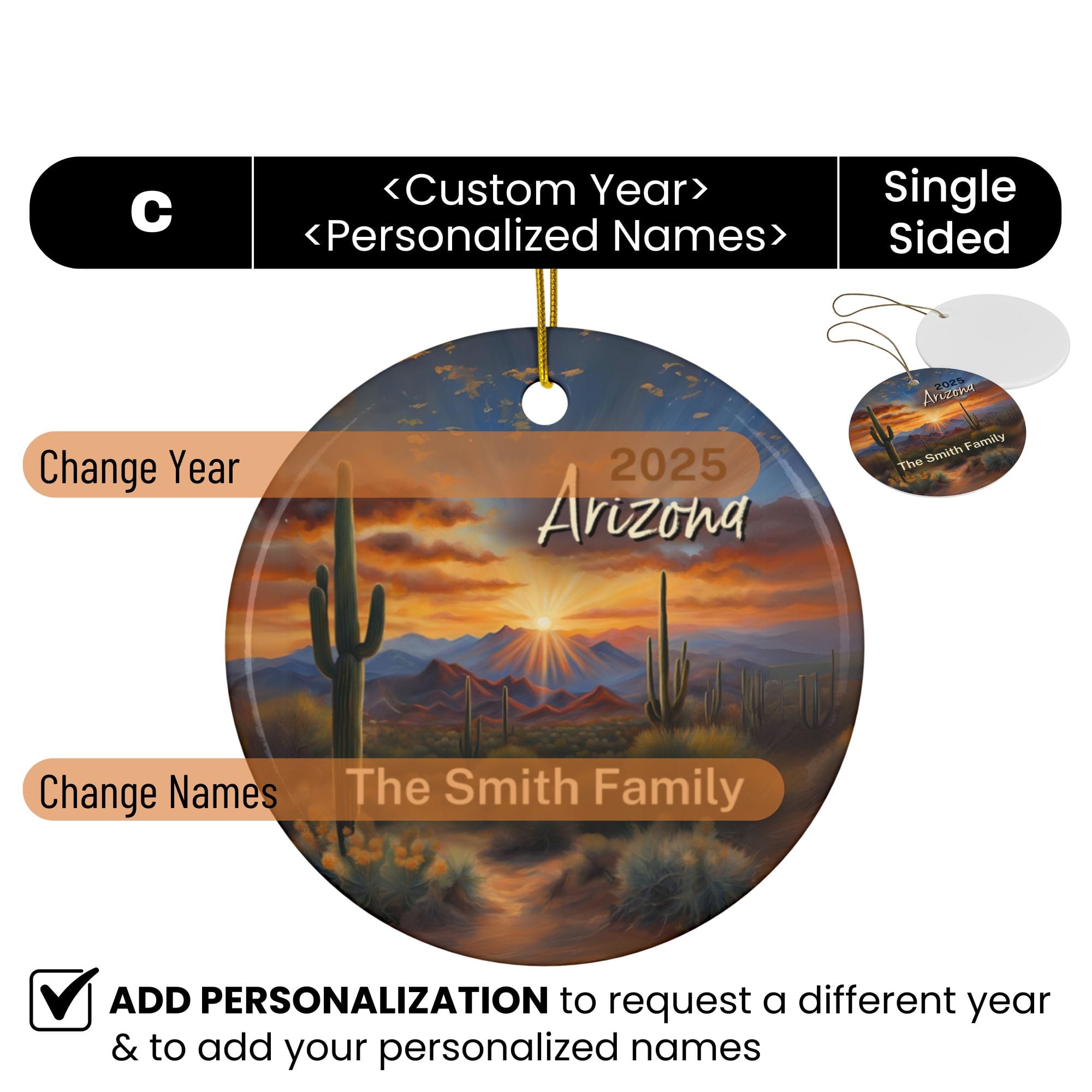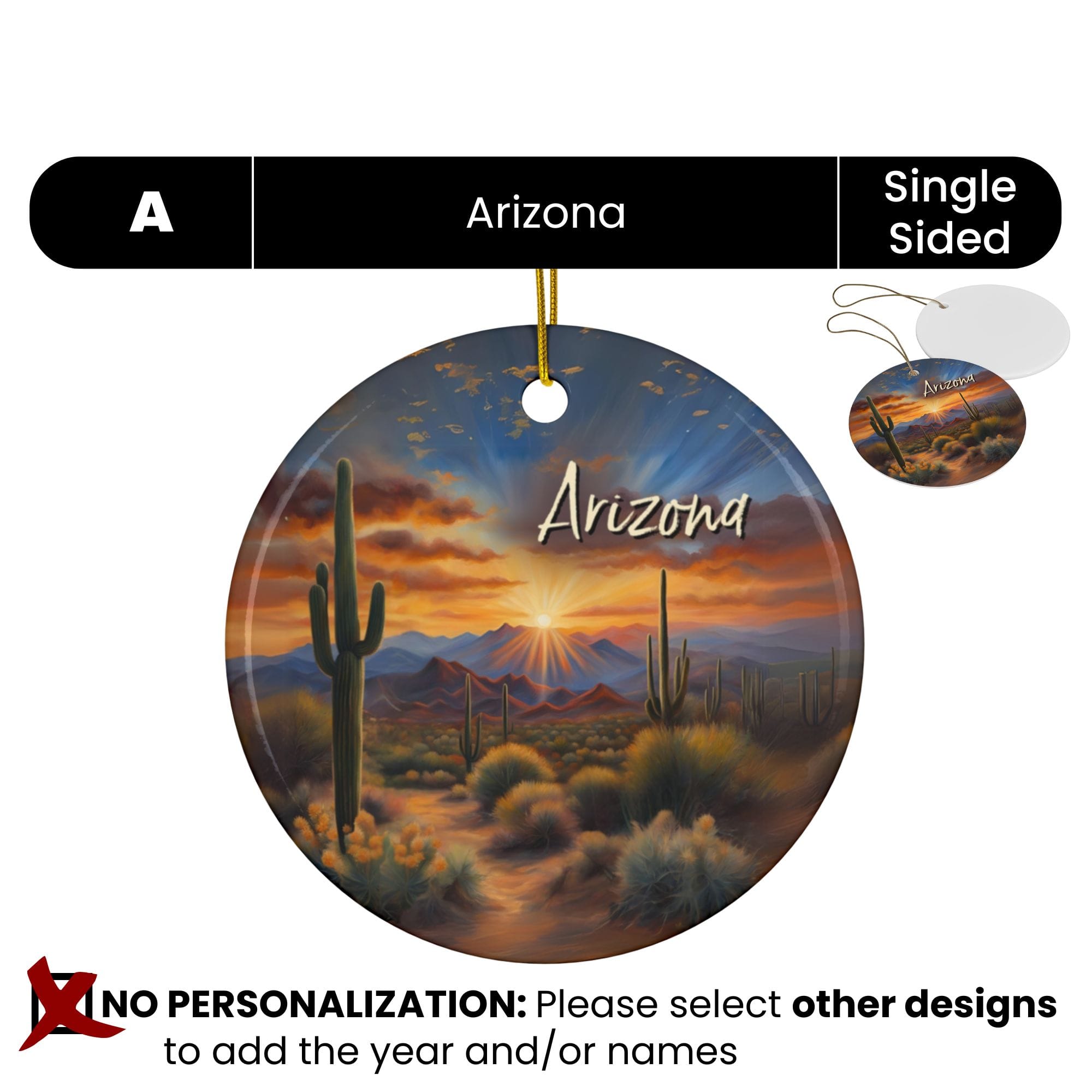 Arizona Ornament: Single-Sided + Year