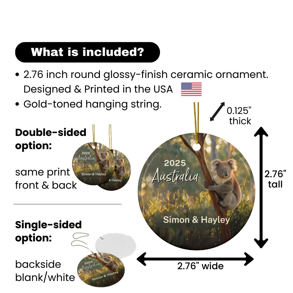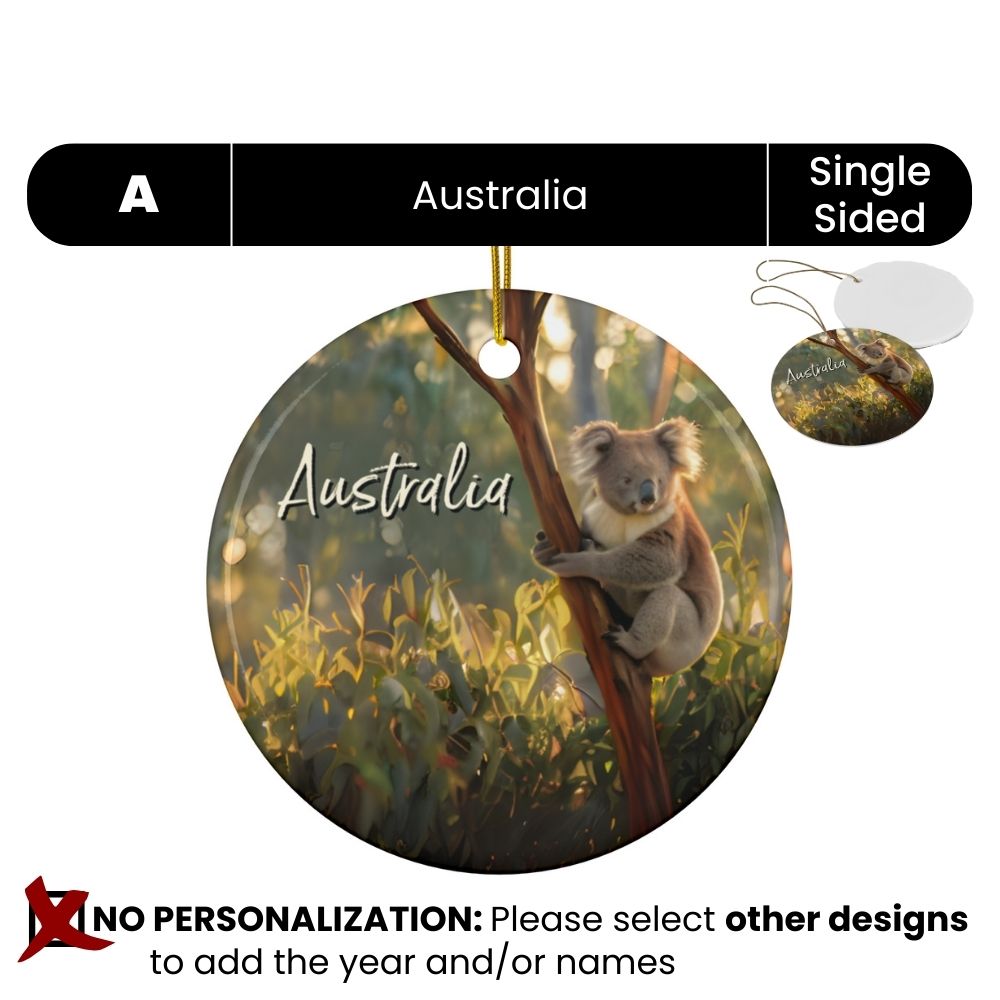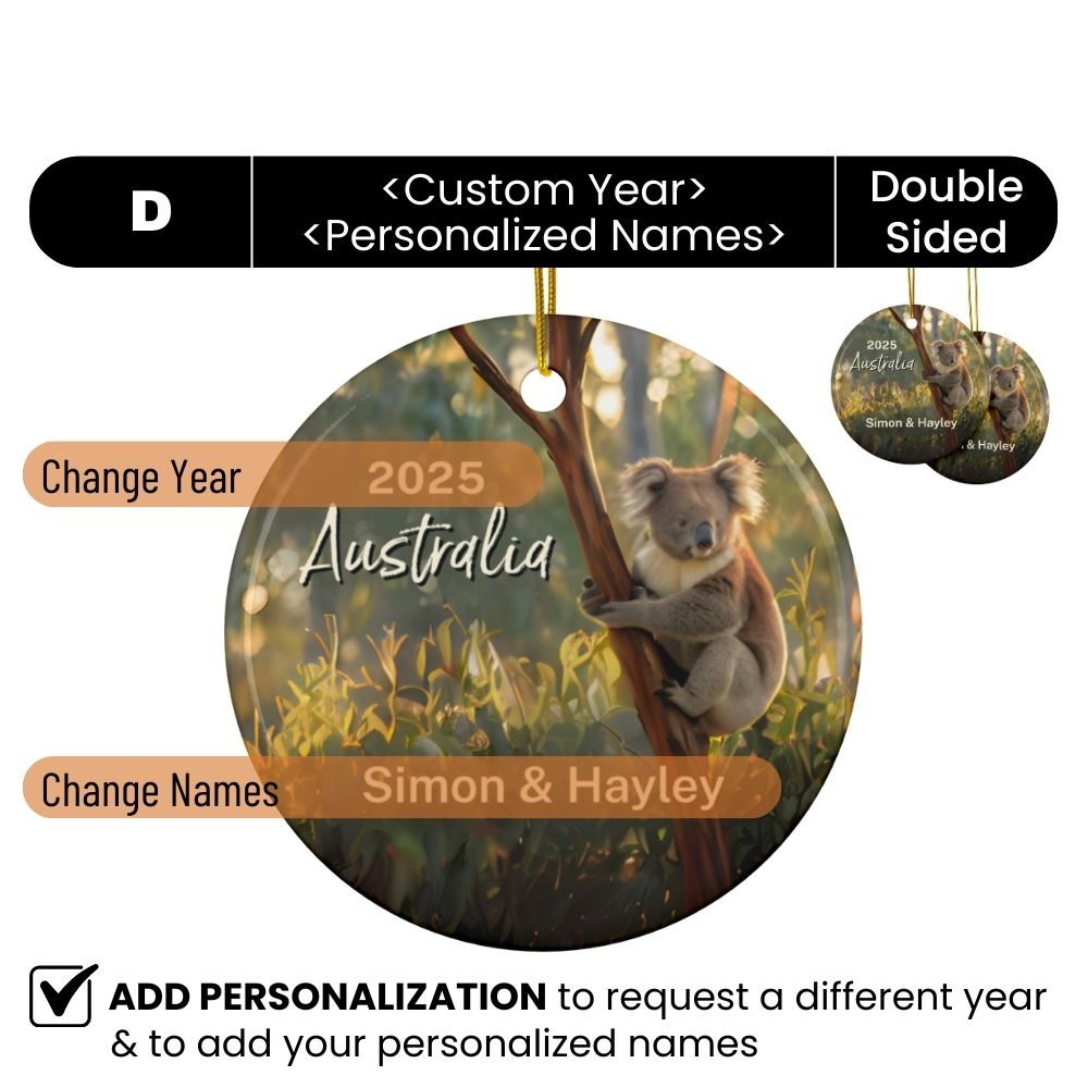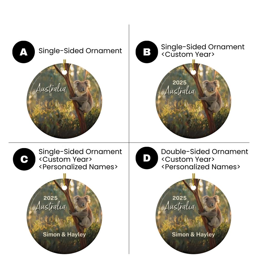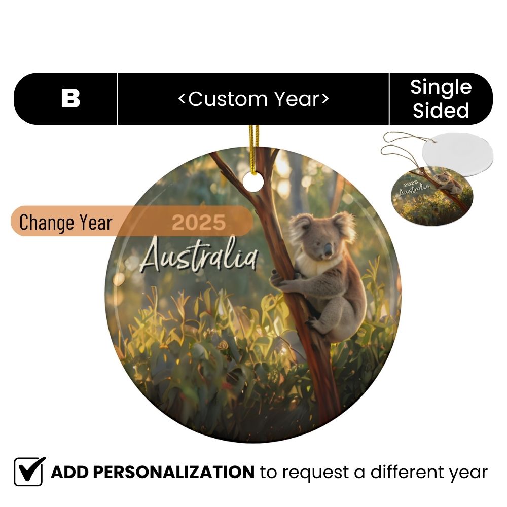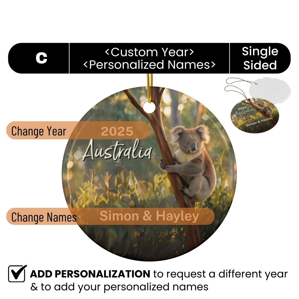 Australia Koala Ornament: Single-Sided + Year + Personalization