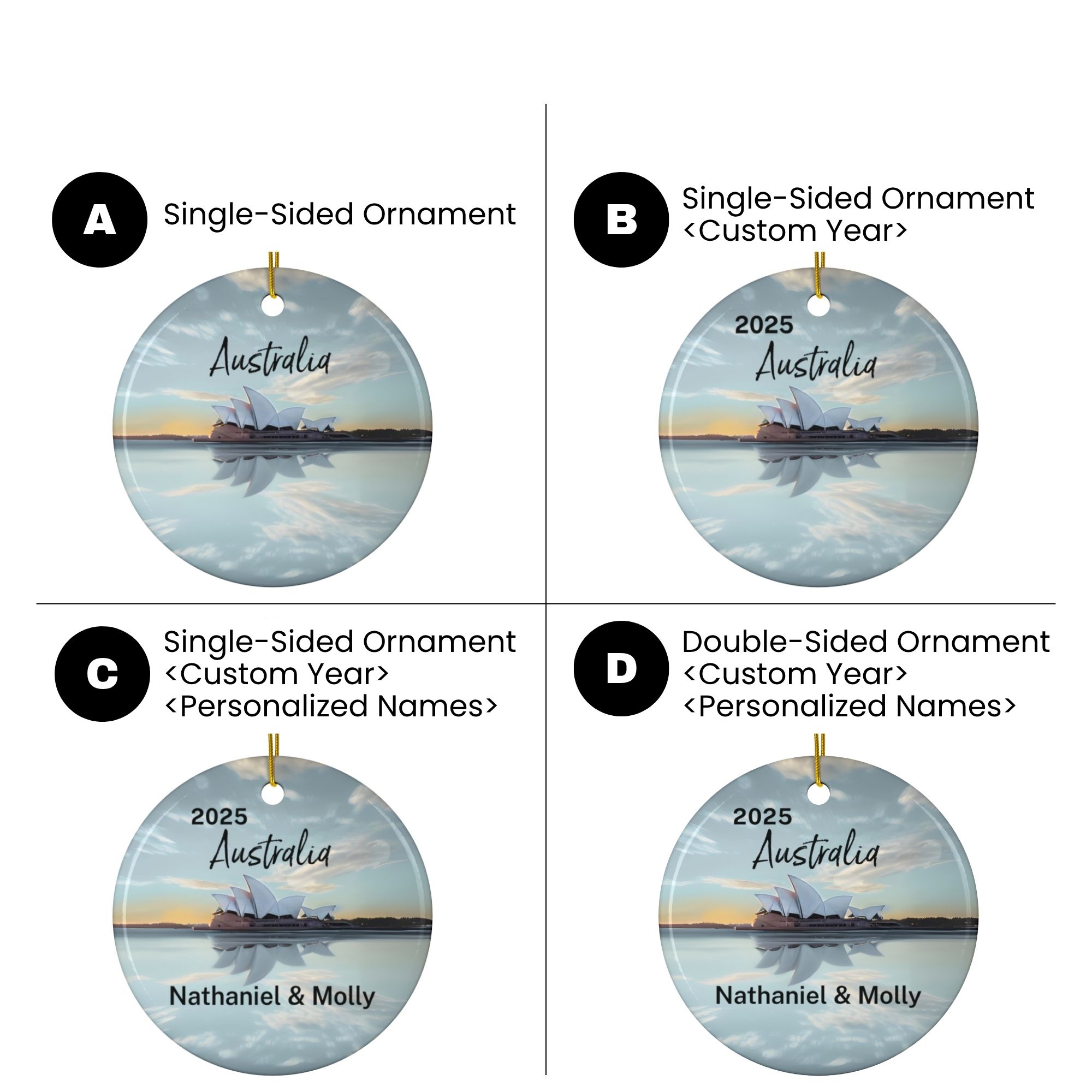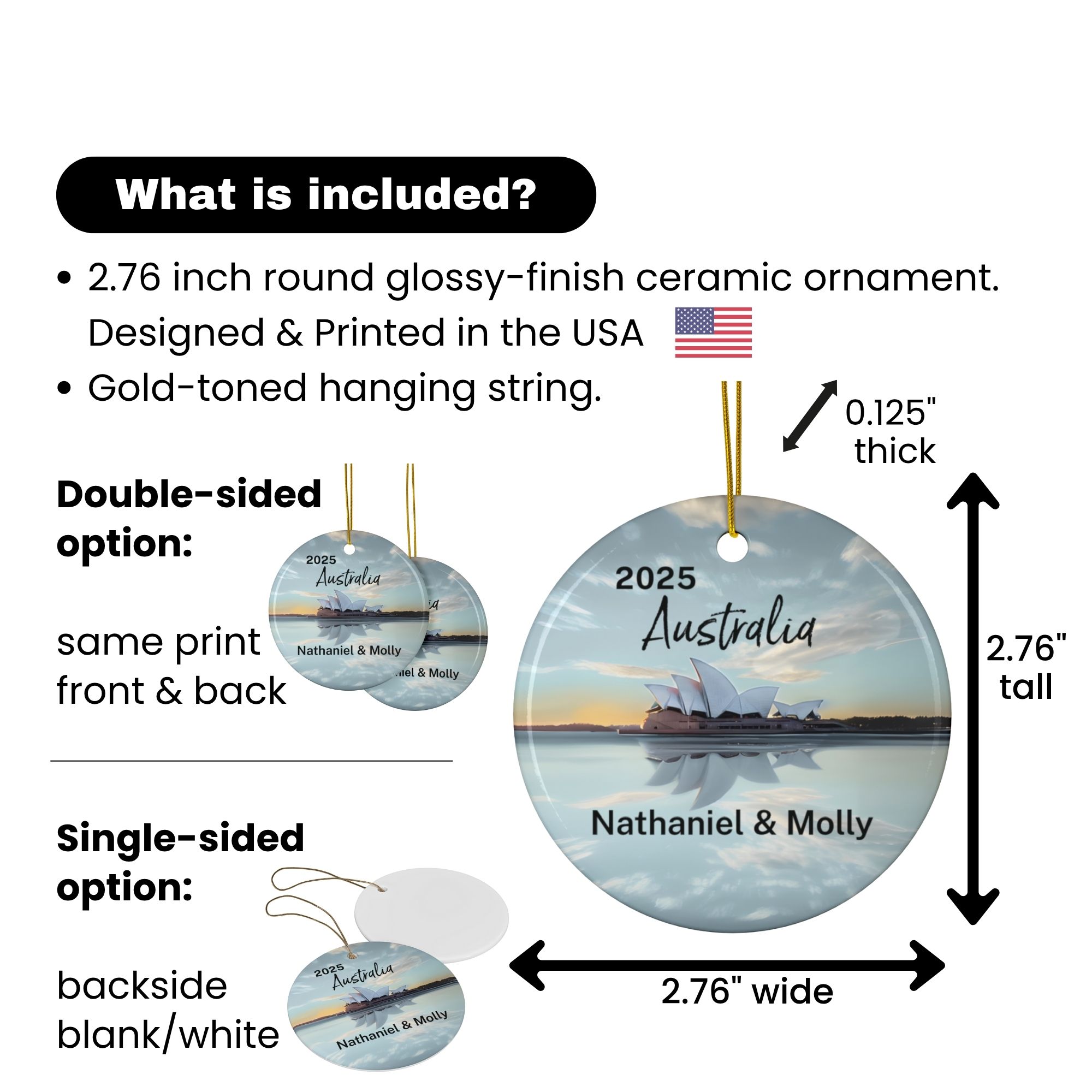 ► Single-Sided Ornaments: Backside white/blank
