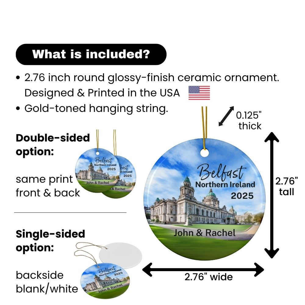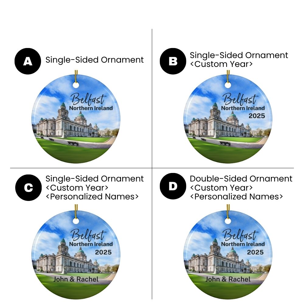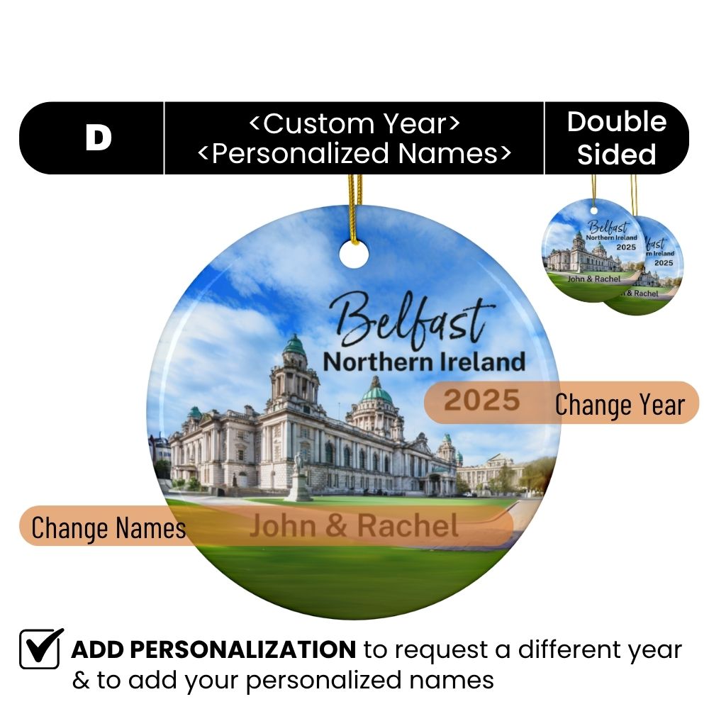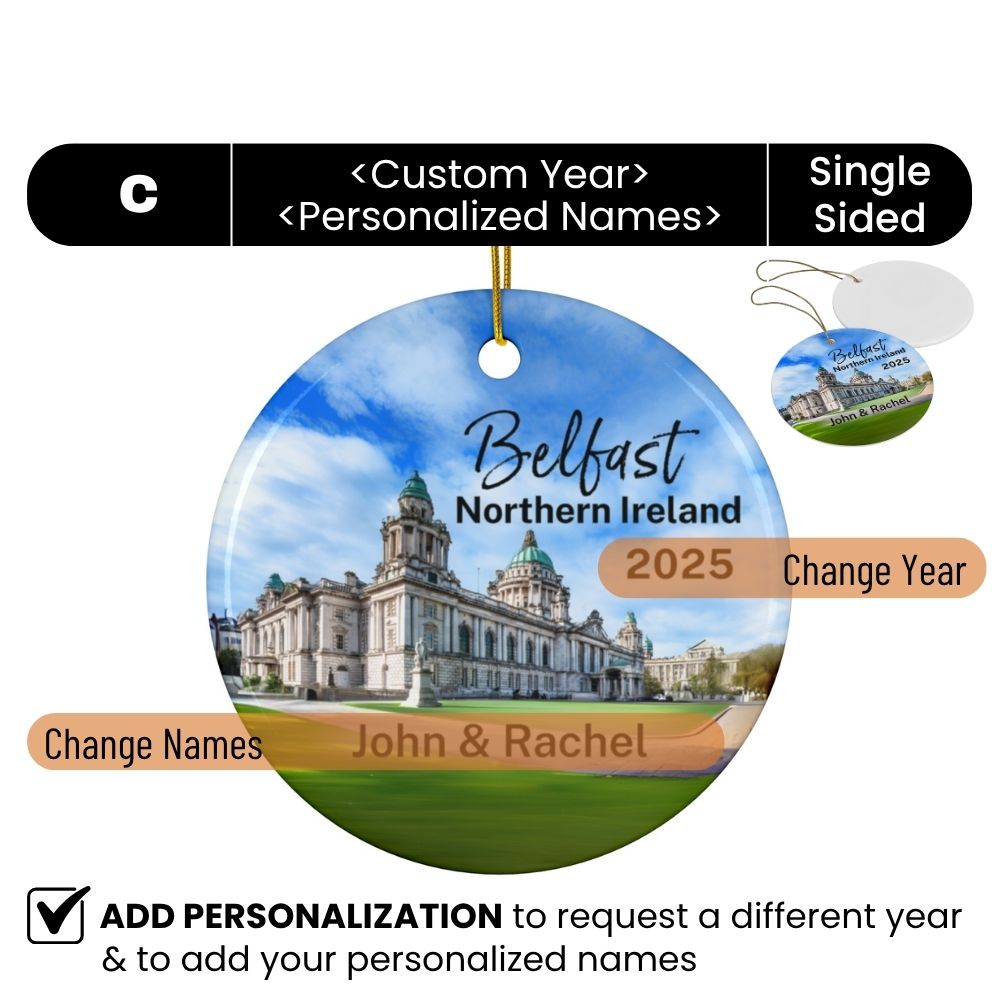 Belfast Northern Ireland Ornament: Single-Sided + Year