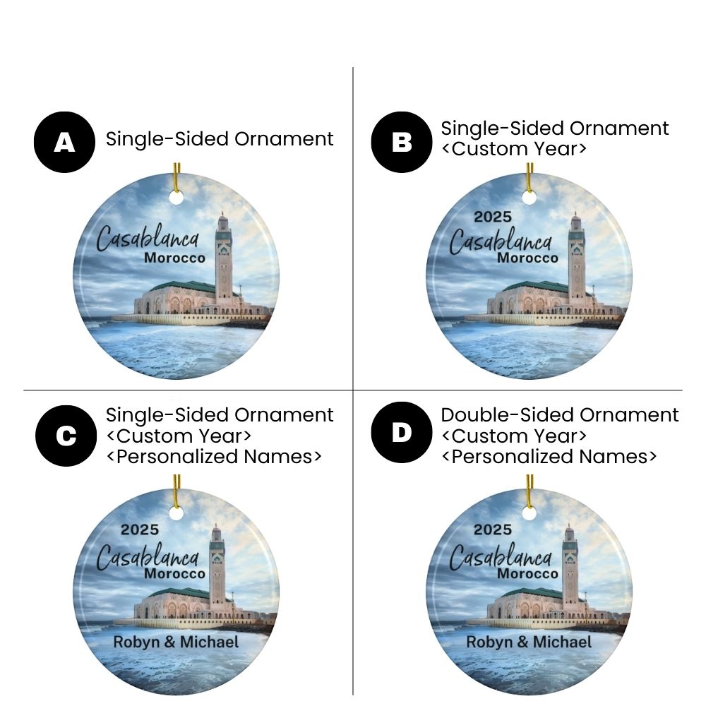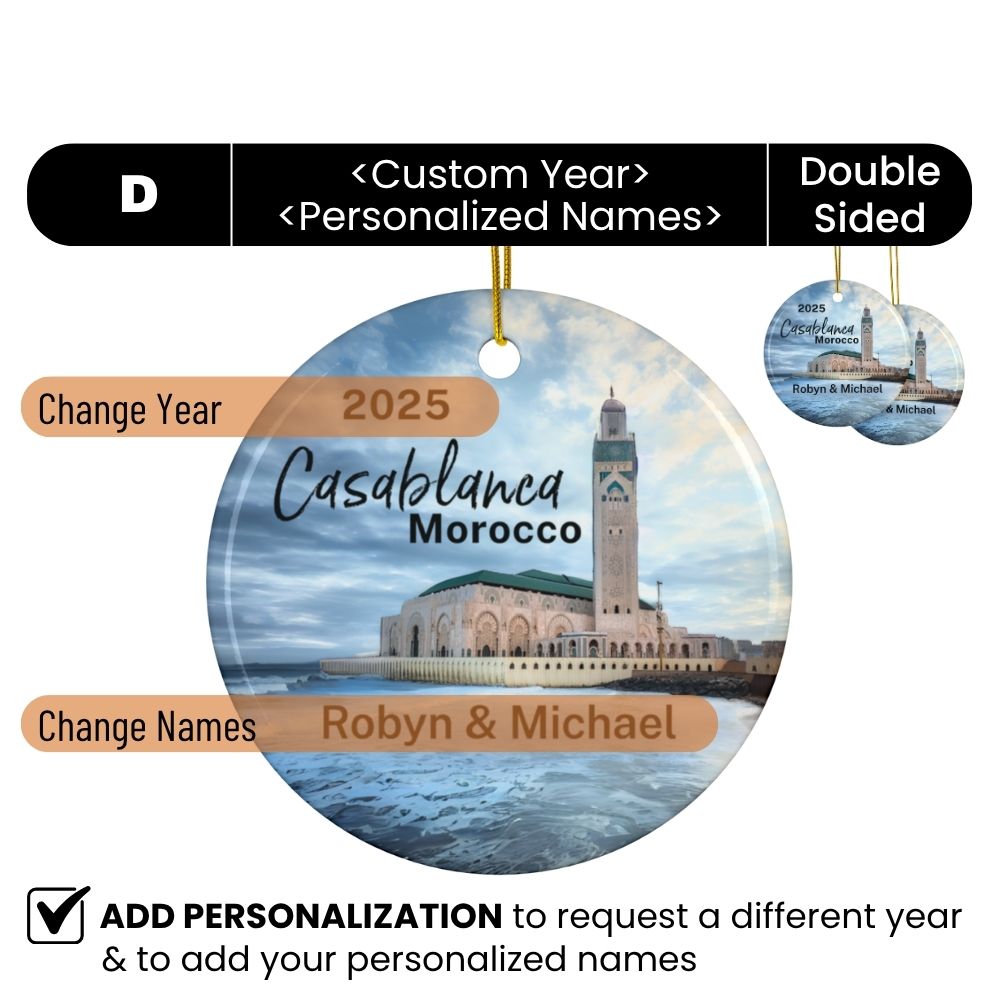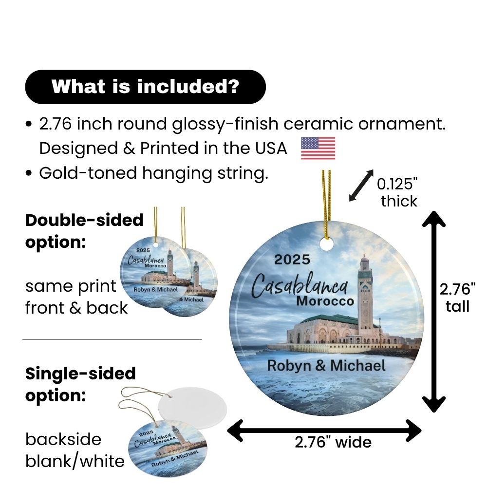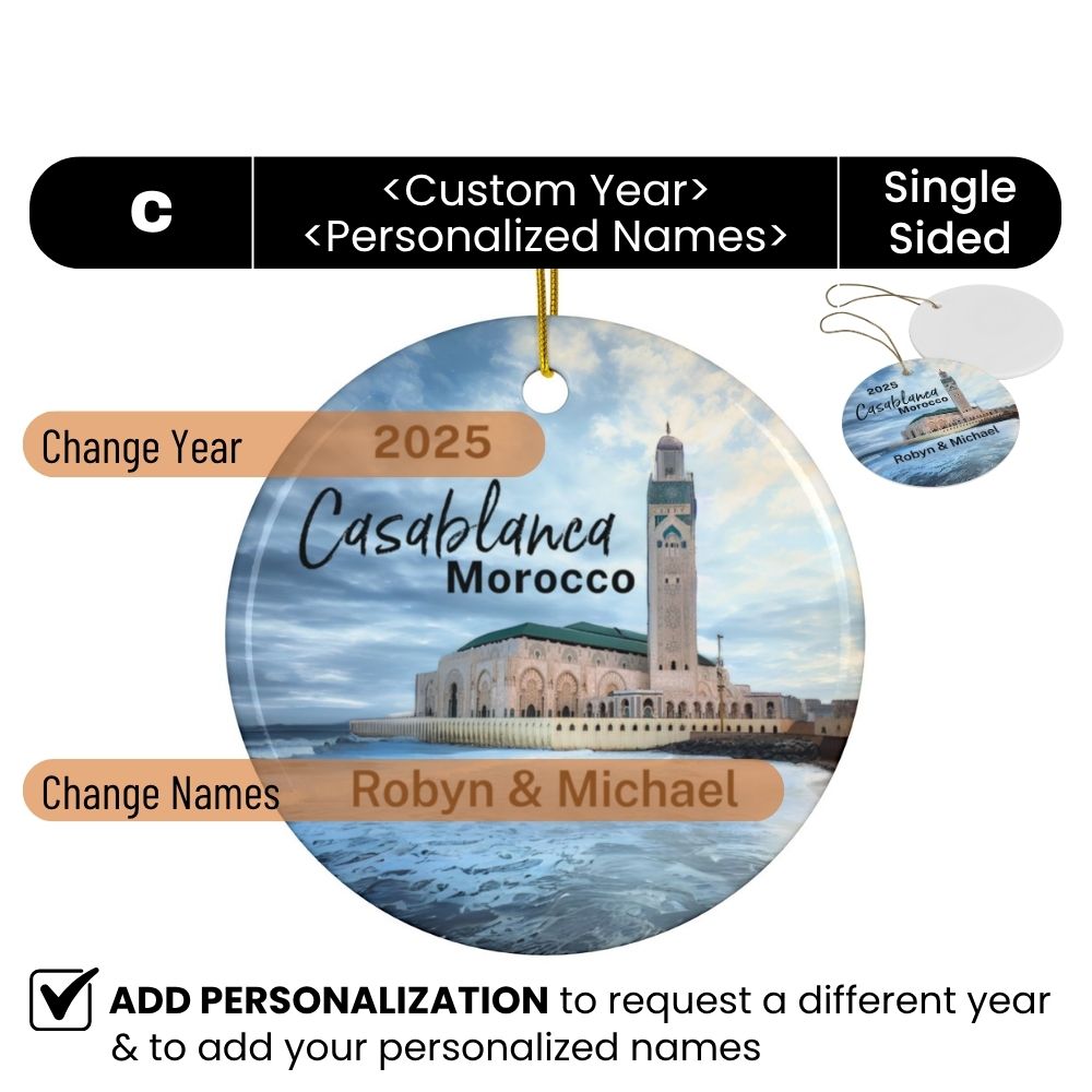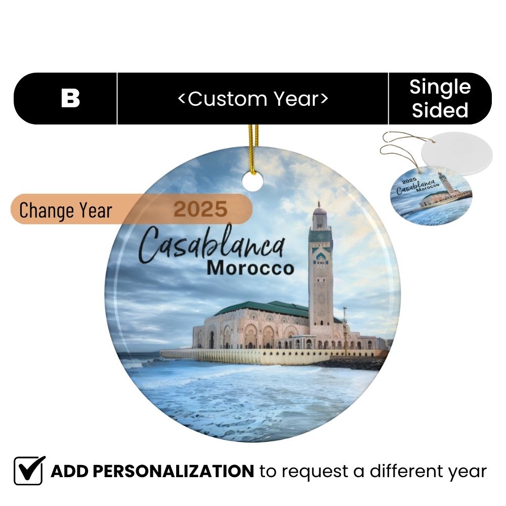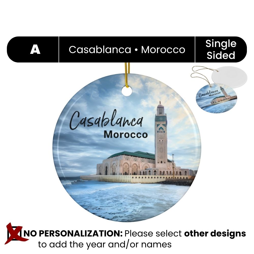 Honor the beauty of Morocco with this ornament featuring the magnificent Hassan II Mosque in Casablanca. A personalized keepsake and travel memento, it’s a thoughtful gift or souvenir to remember the elegance and coastal charm of this iconic landmark.