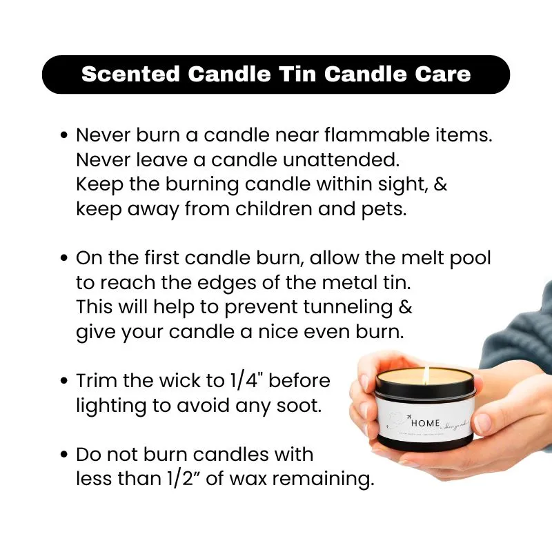 Metal Tin Scented Candles are perfect for traveling to take the scent with you to evoke a time, place, or memory.