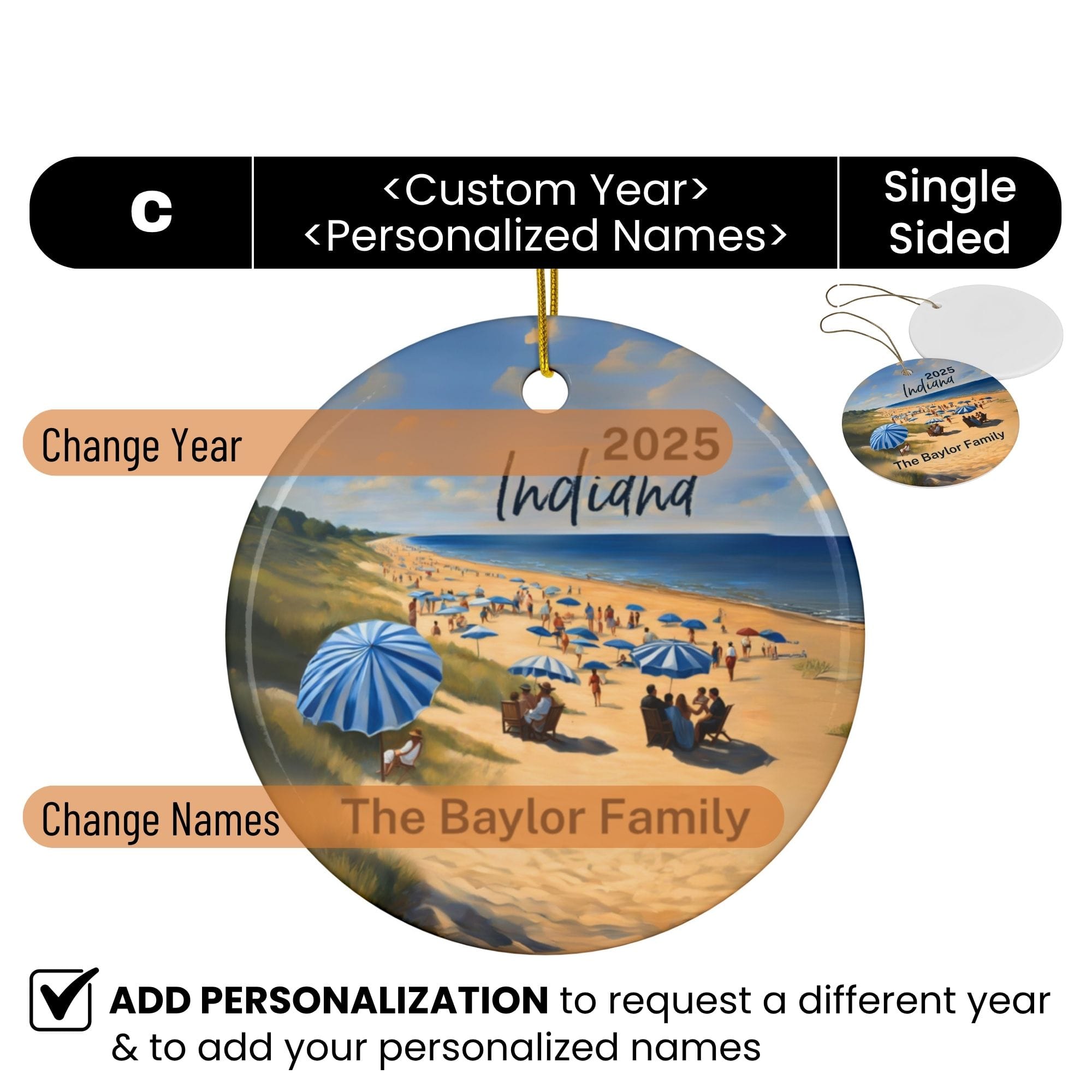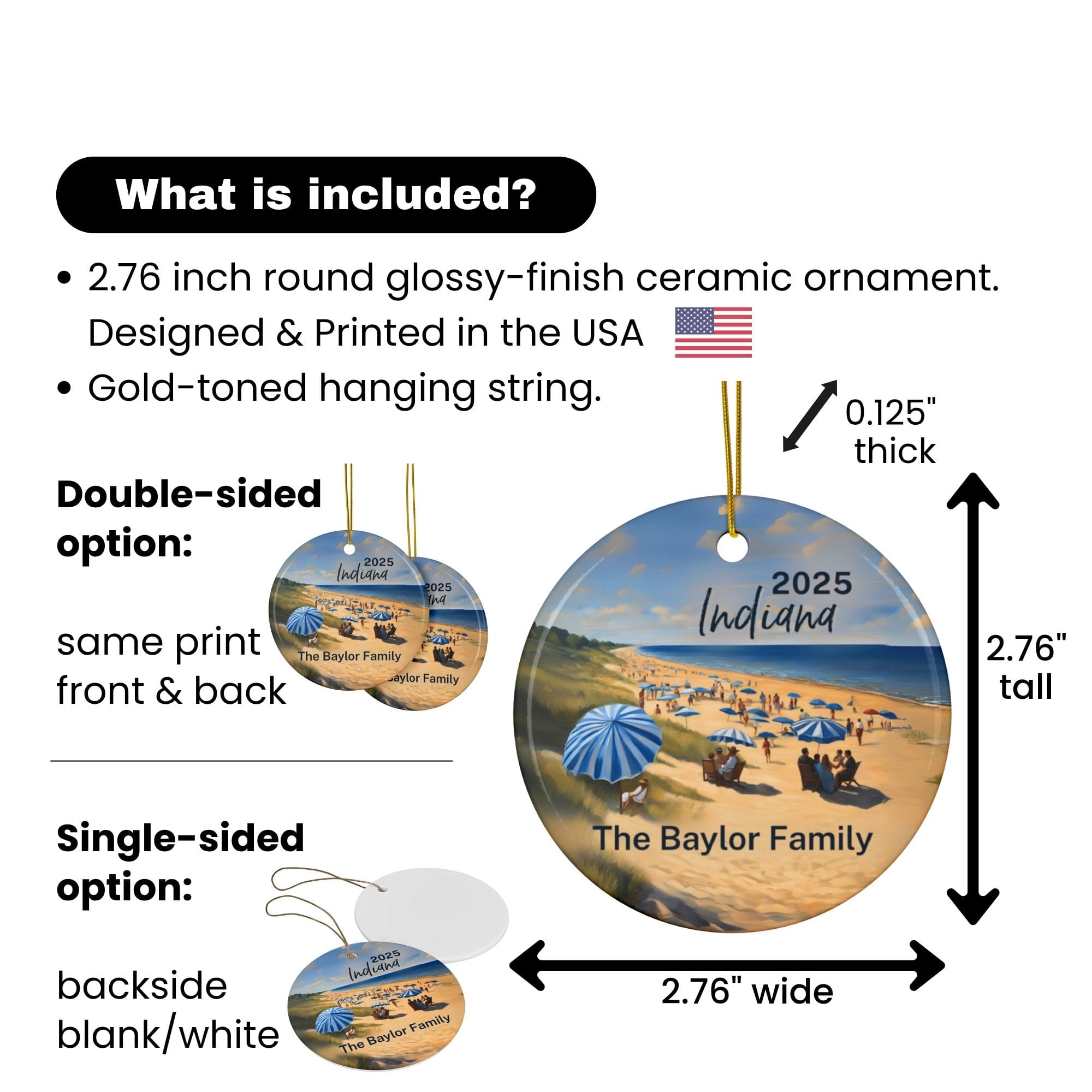 Indiana Ornament: Single-Sided + Year + Personalization