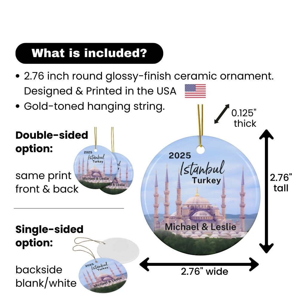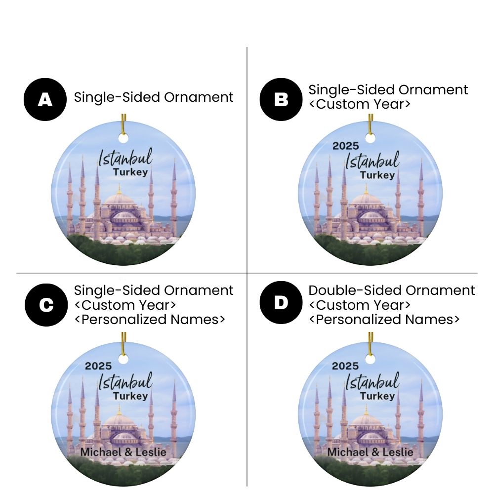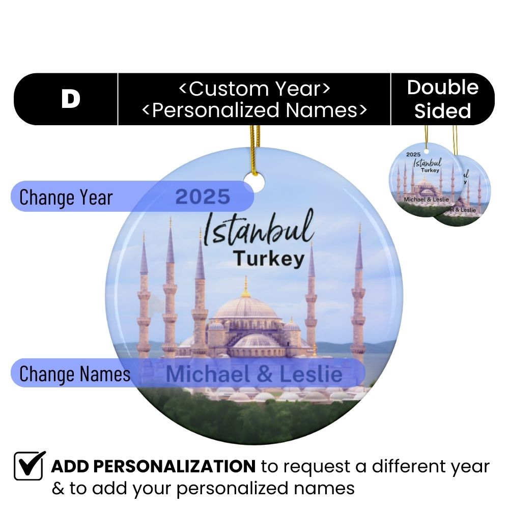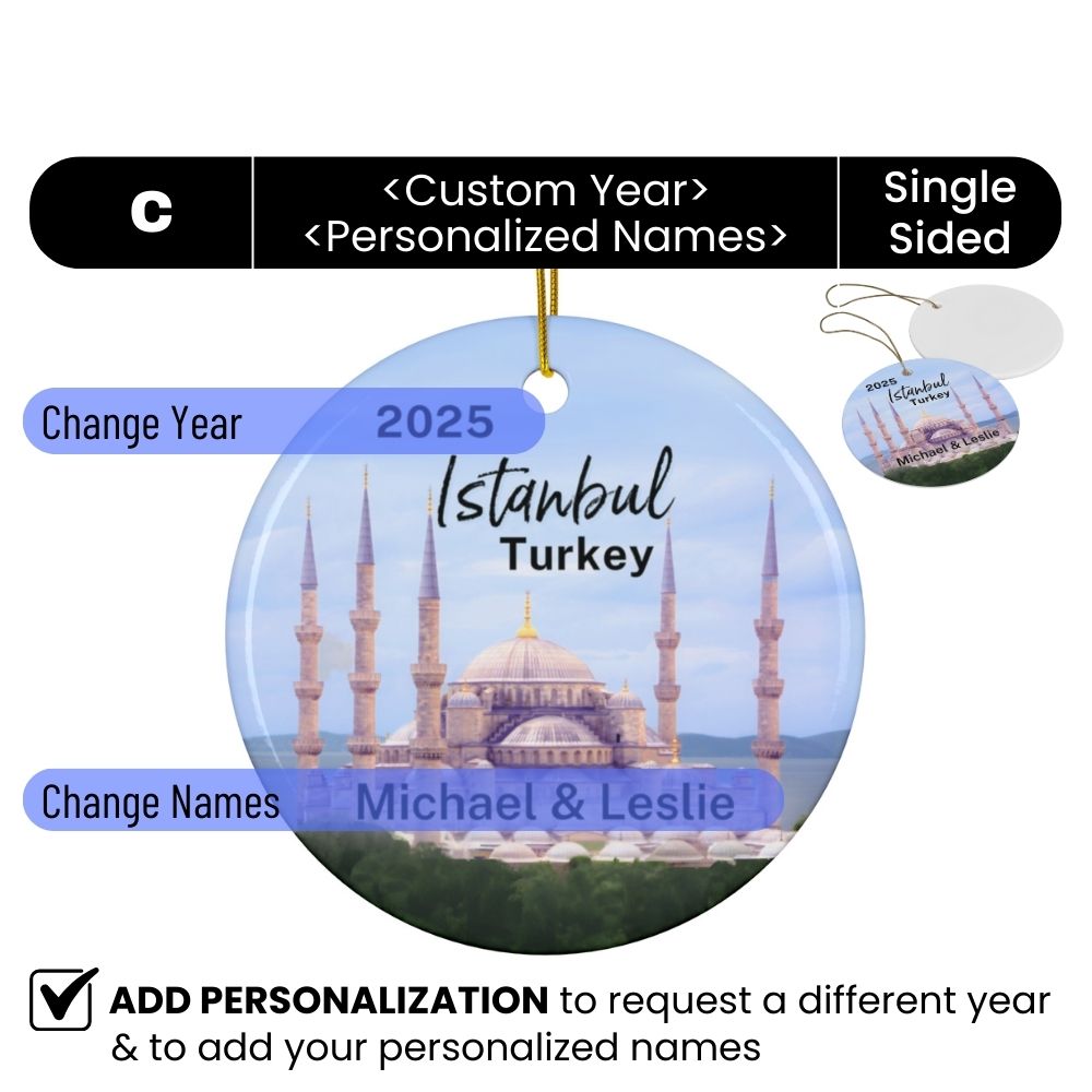 Istanbul Turkey Blue Mosque Ornament: Single-Sided + Year + Personalization