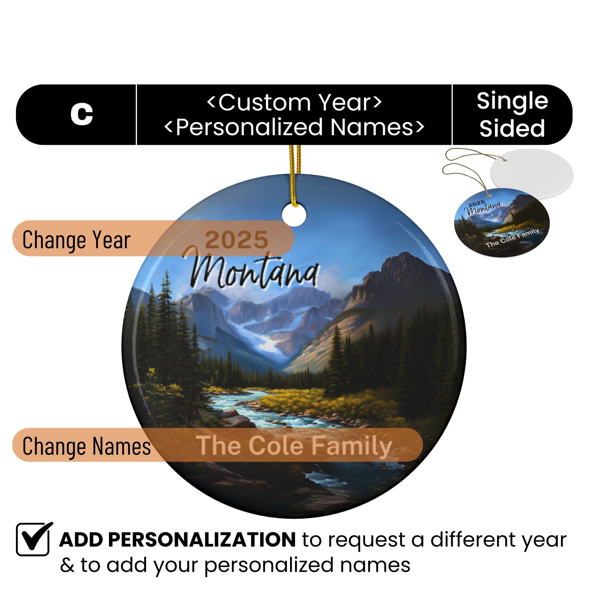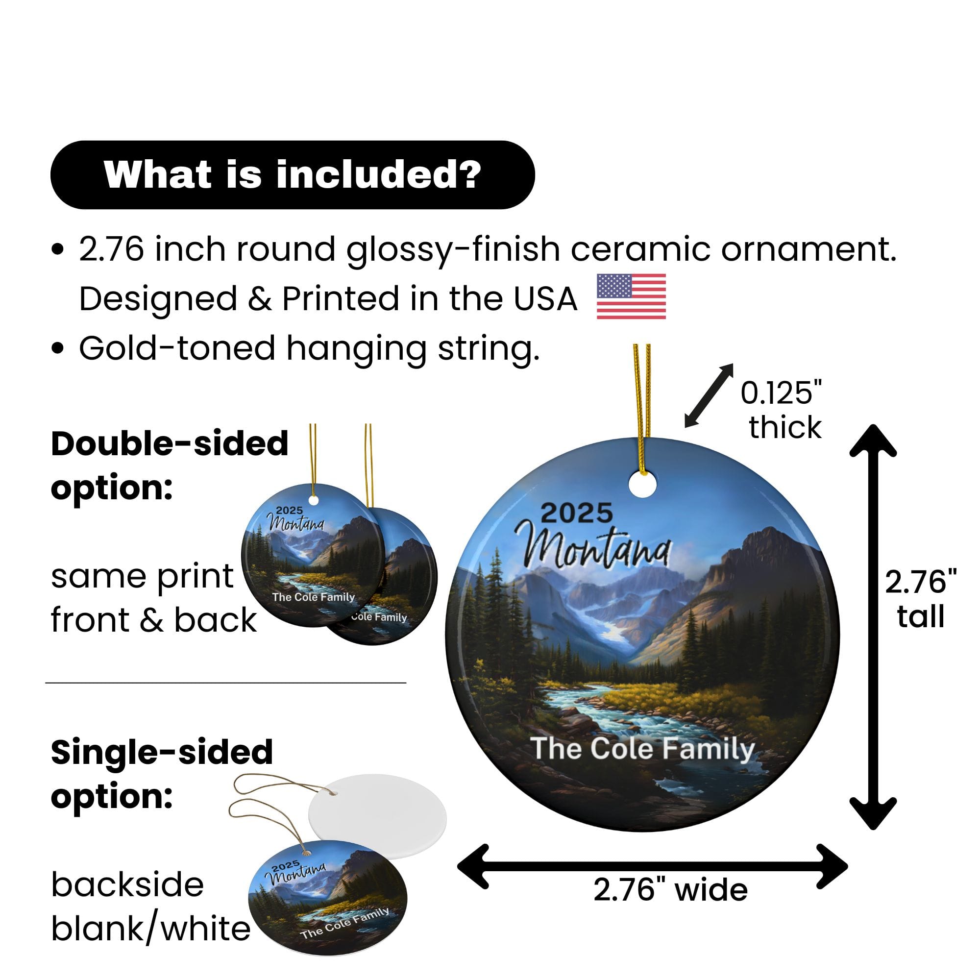 Remember your Montana adventure with a personalized Christmas ornament featuring the majestic peaks of the Rockies, glacial rivers perfect for kayaking, and the iconic outline of Big Sky Country.