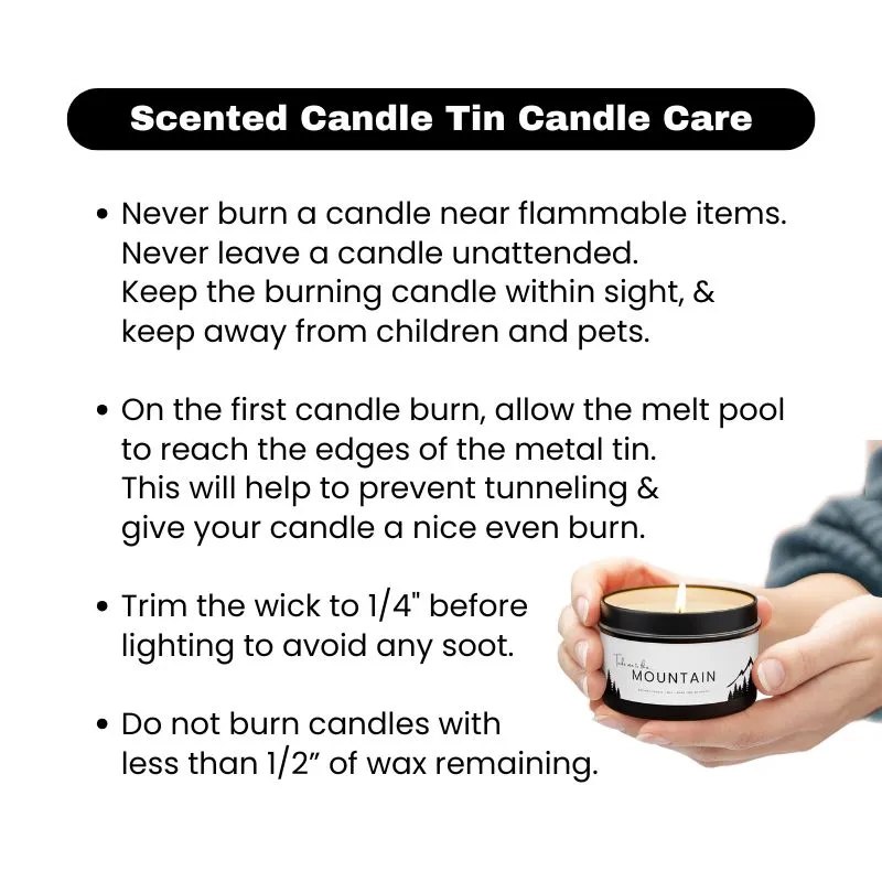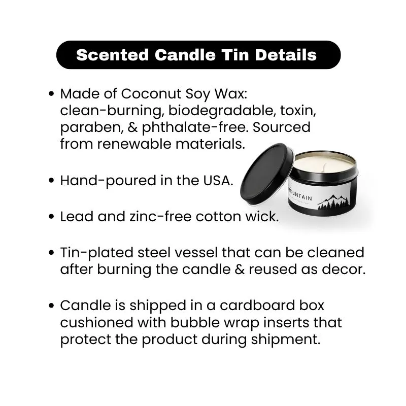 Metal Tin Scented Candles are perfect for traveling to take the scent with you to evoke a time, place, or memory.