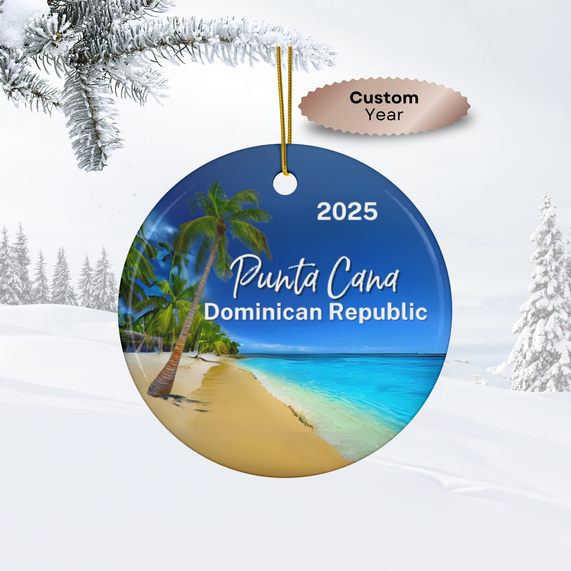 Punta Cana Dominican Republic Ornament: Single-Sided + Year