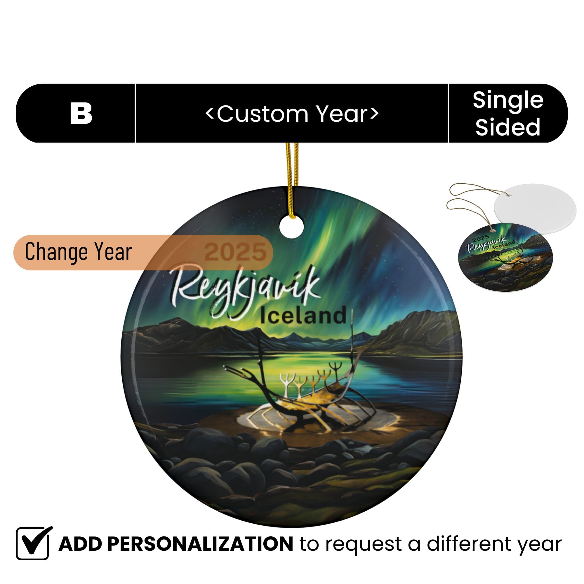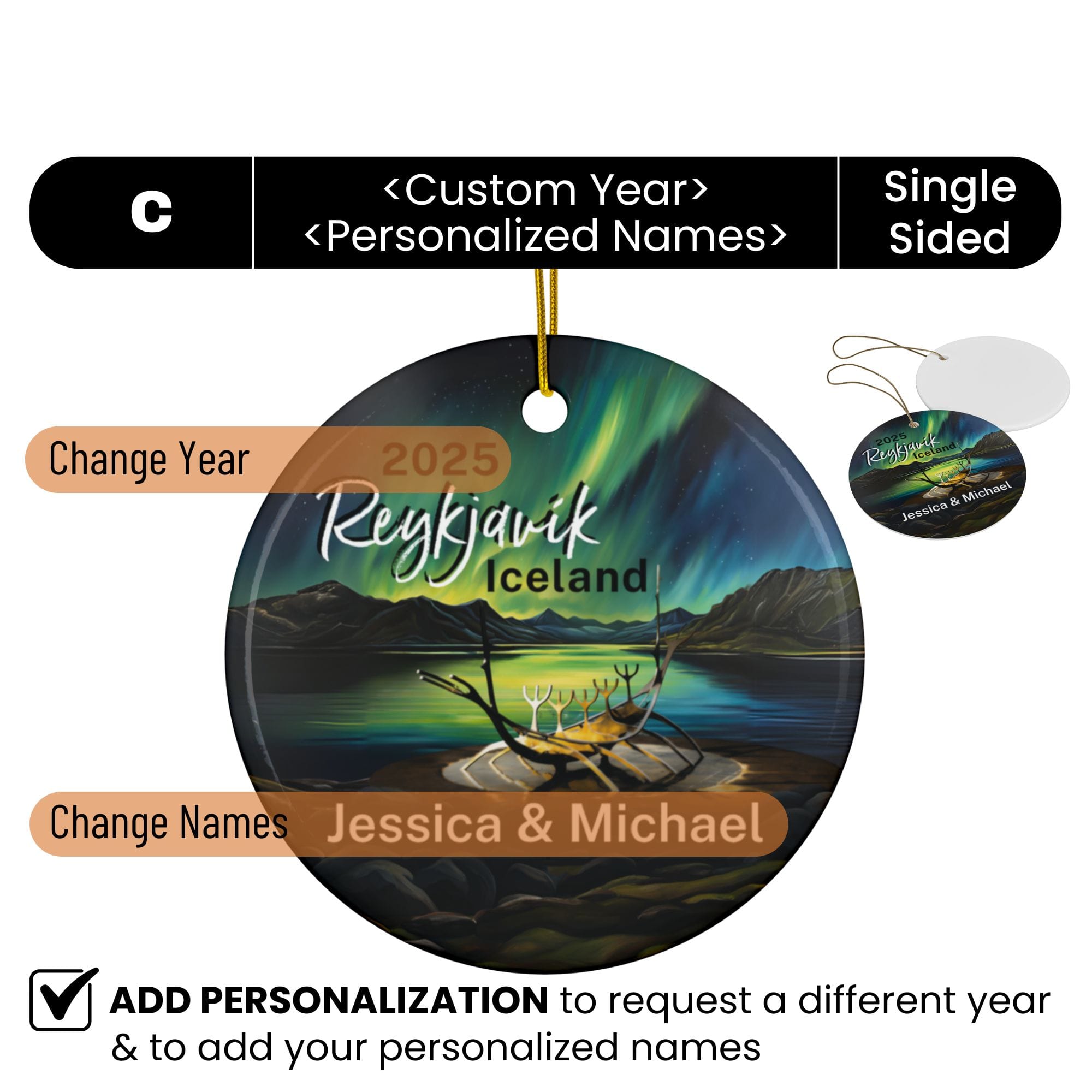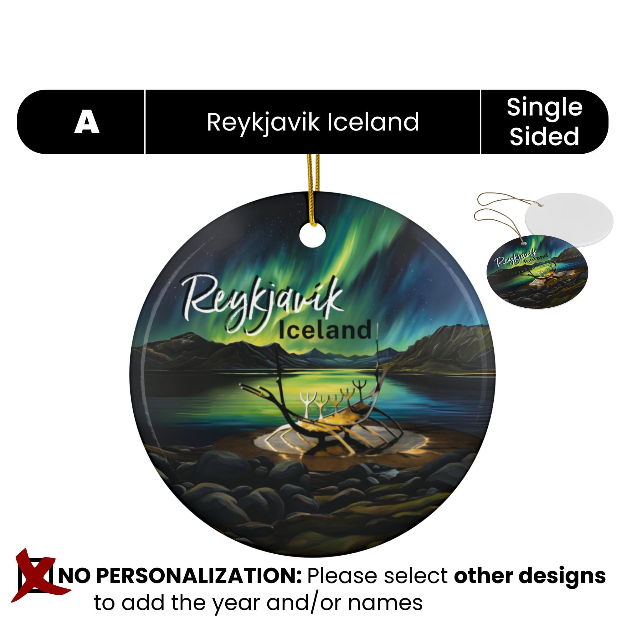 Remember your trip to Reykjavik Iceland, the Northern Lights, and the Sun Voyager sculpture with this personalized Christmas Ornament.
