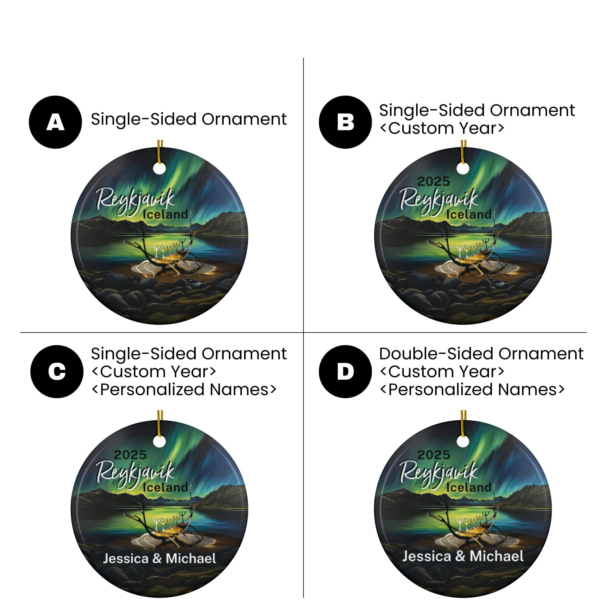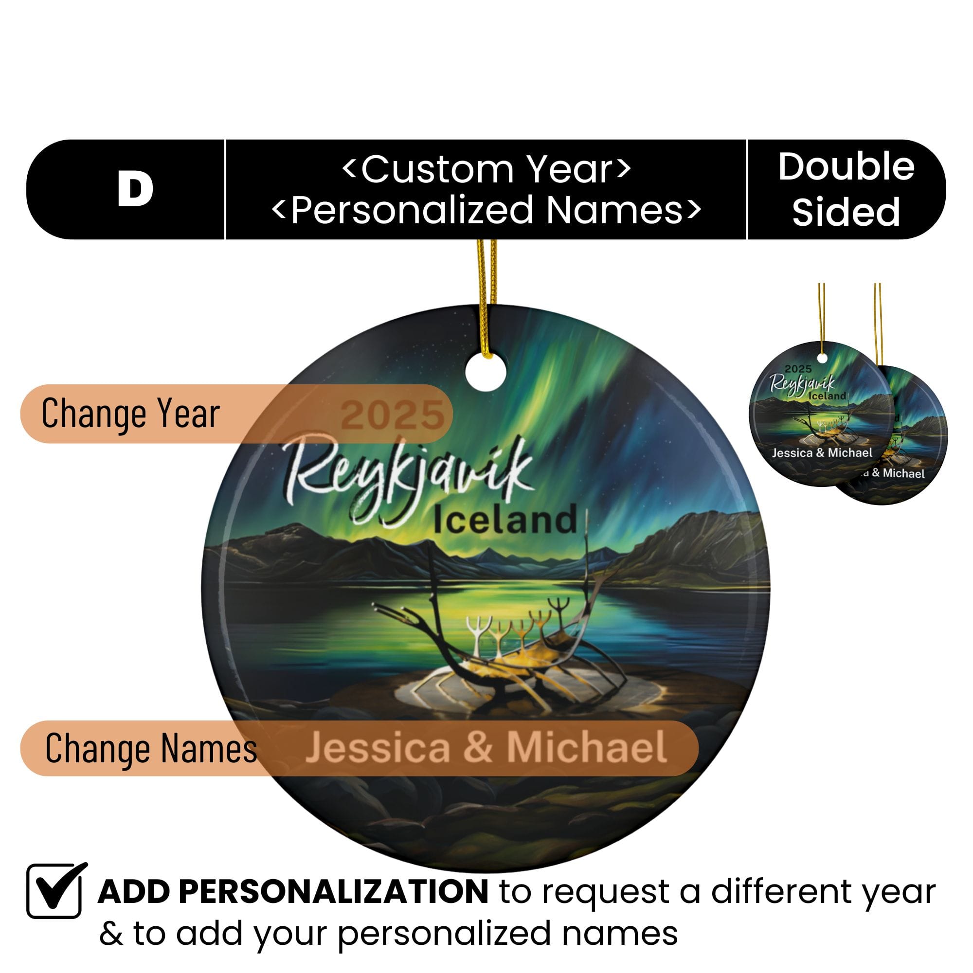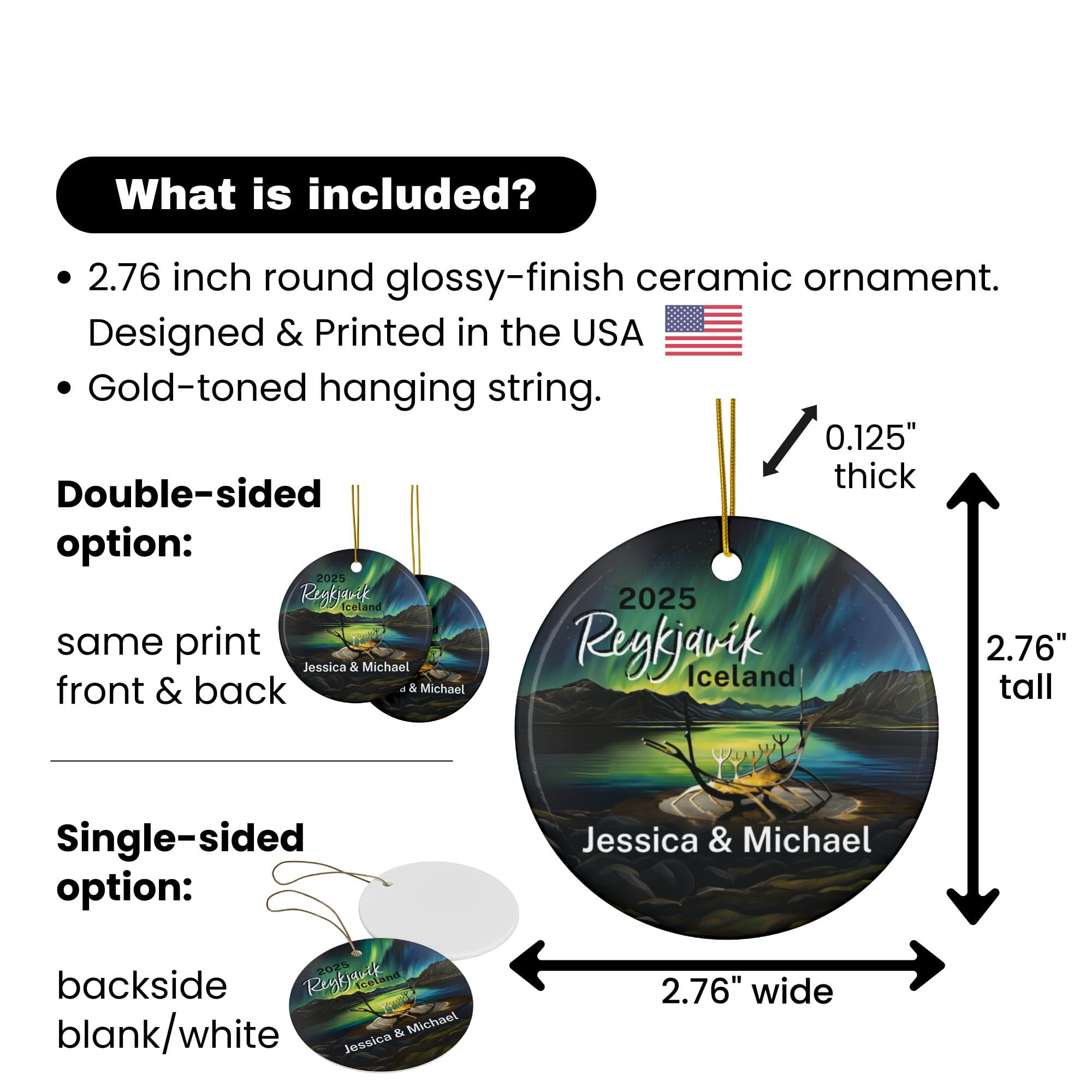 Remember your trip to Reykjavik Iceland, the Northern Lights, and the Sun Voyager sculpture with this personalized Christmas Ornament.