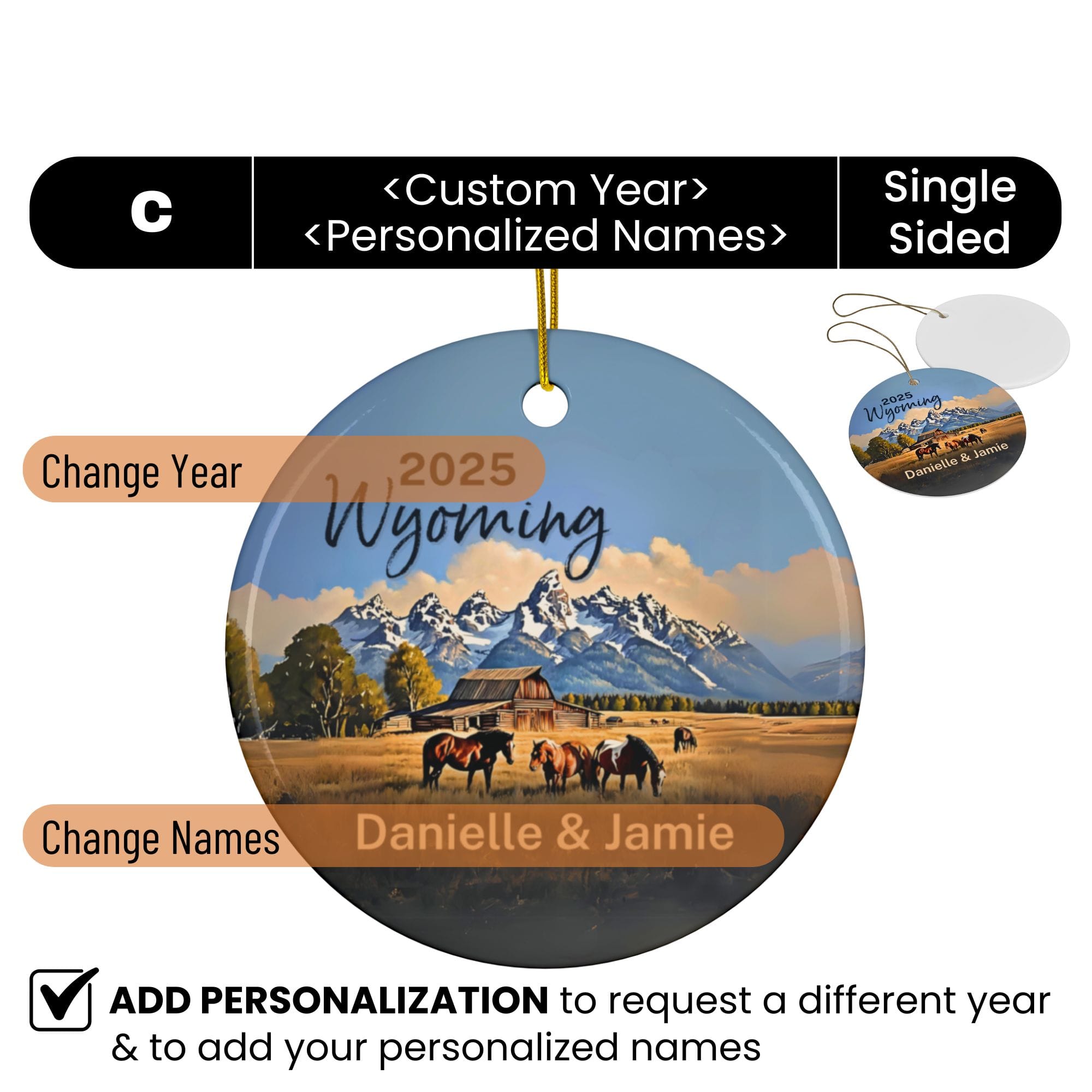 Remember your adventure in the wild beauty of Wyoming with a personalized Christmas ornament.
